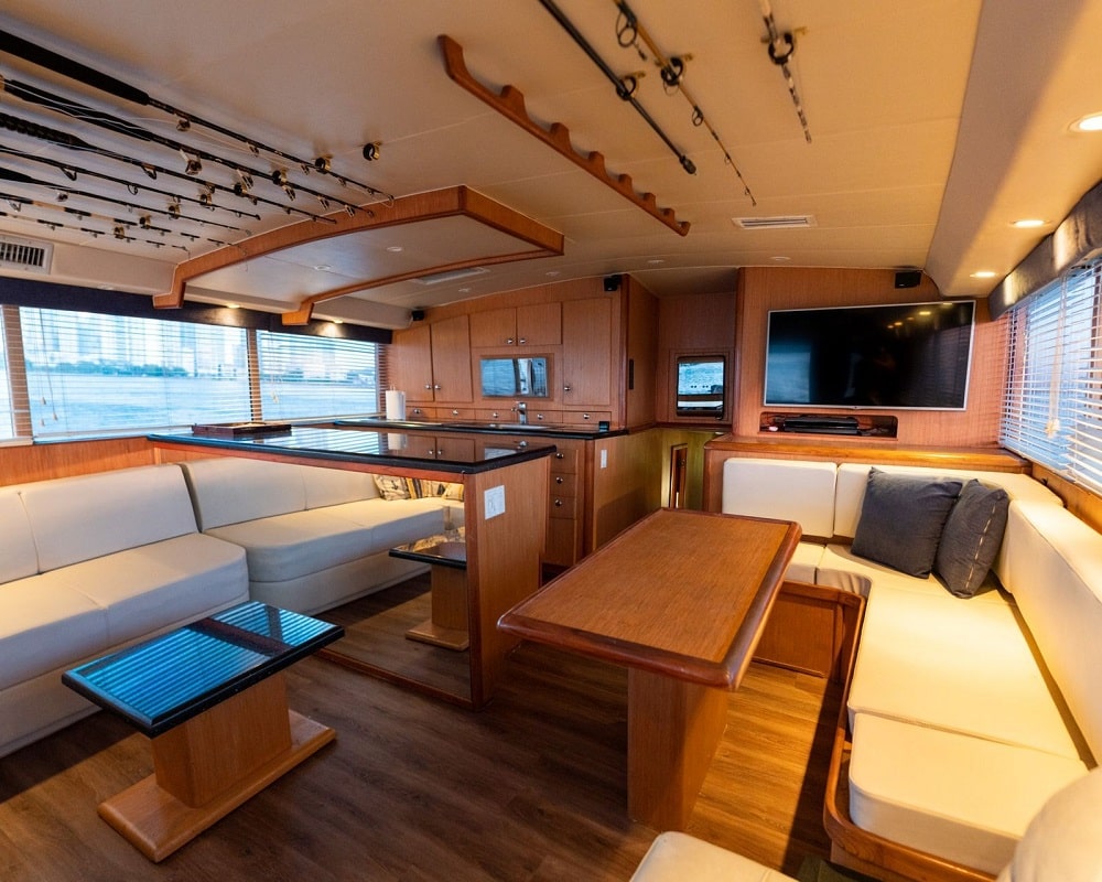 🛋️ Social areas: Living-dining room, flybridge, stern, sun area in the bow