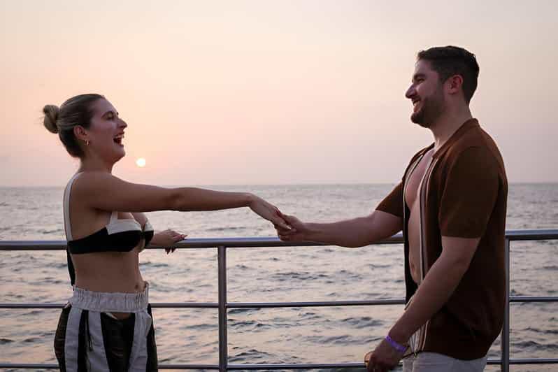 Explorar Cartagena al atardecer desde el mar Caribe con una bebida en la mano es un plan imprescindible para los románticos y quienes buscan un toque especial en su visita.