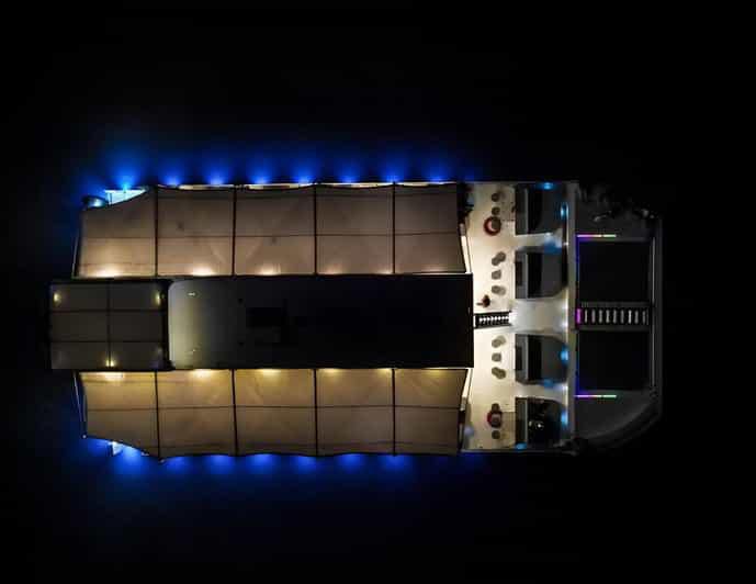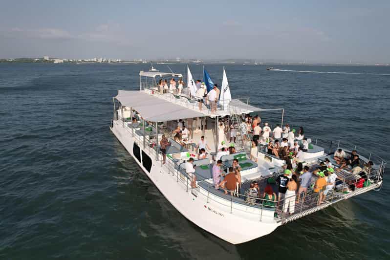 Zarpamos desde el Muelle de la Bodeguita frente a la Ciudad Amurallada. Navegamos entre los rascacielos de Manga y Bocagrande, pasando por Isla Manzanillo, Castillo Grande y El Laguito. Al llegar a la bahía frente a la isla Tierra Bomba, abrimos las velas para disfrutar de una navegación tranquila, mientras las luces de Cartagena iluminan el horizonte.